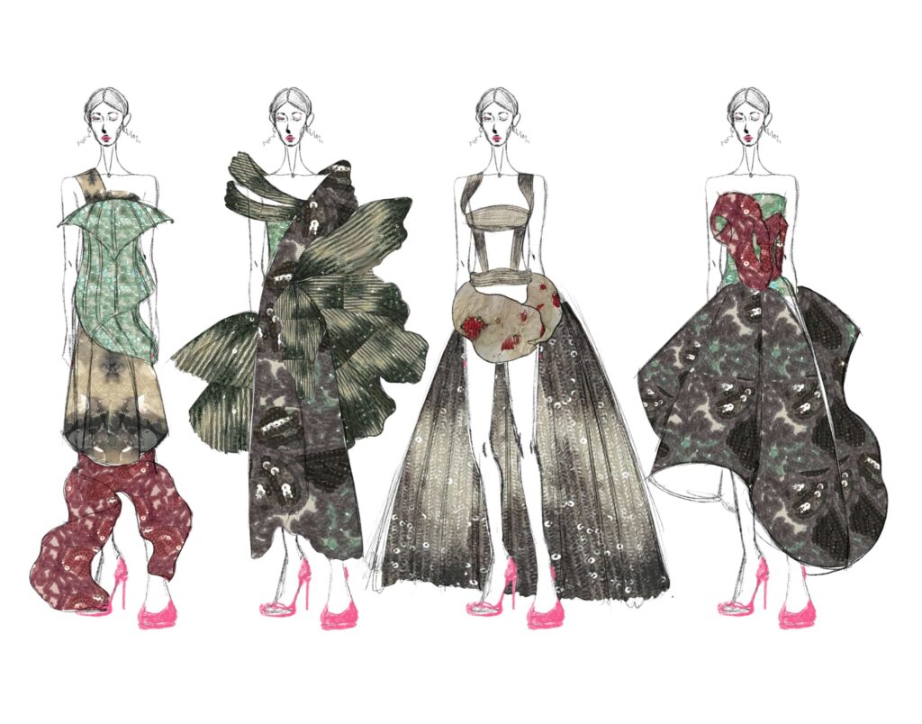 Themes span the deeply personal to the universally resonant: the challenges of neurodiversity, the resilience of faith, the trauma of abuse, the majesty of the natural world, the spirit of sport, and more. Every look tells a story, rendered through innovative materials, stunning fabrics, and a shared commitment to sustainability.